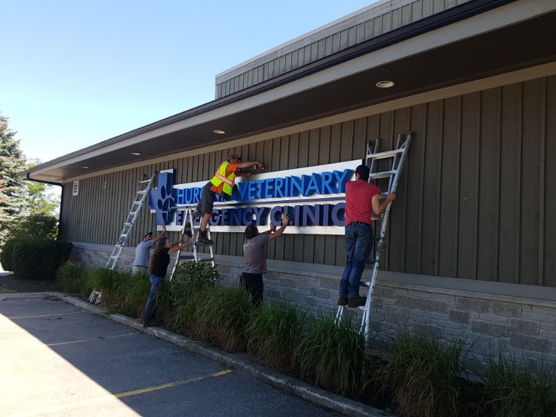 It was a privilege to be selected to provide all of the exterior illuminated LED channel letter signs for the new facility in Barrie for this amazing animal care clinic. Prosigns.ca is committed to making each project a pleasant experience for our clients. This location required every aspect from design to construction and installation, as well as the acquiring of the necessary permits from the City of Barrie and the Ministry of Transportation Ontario.