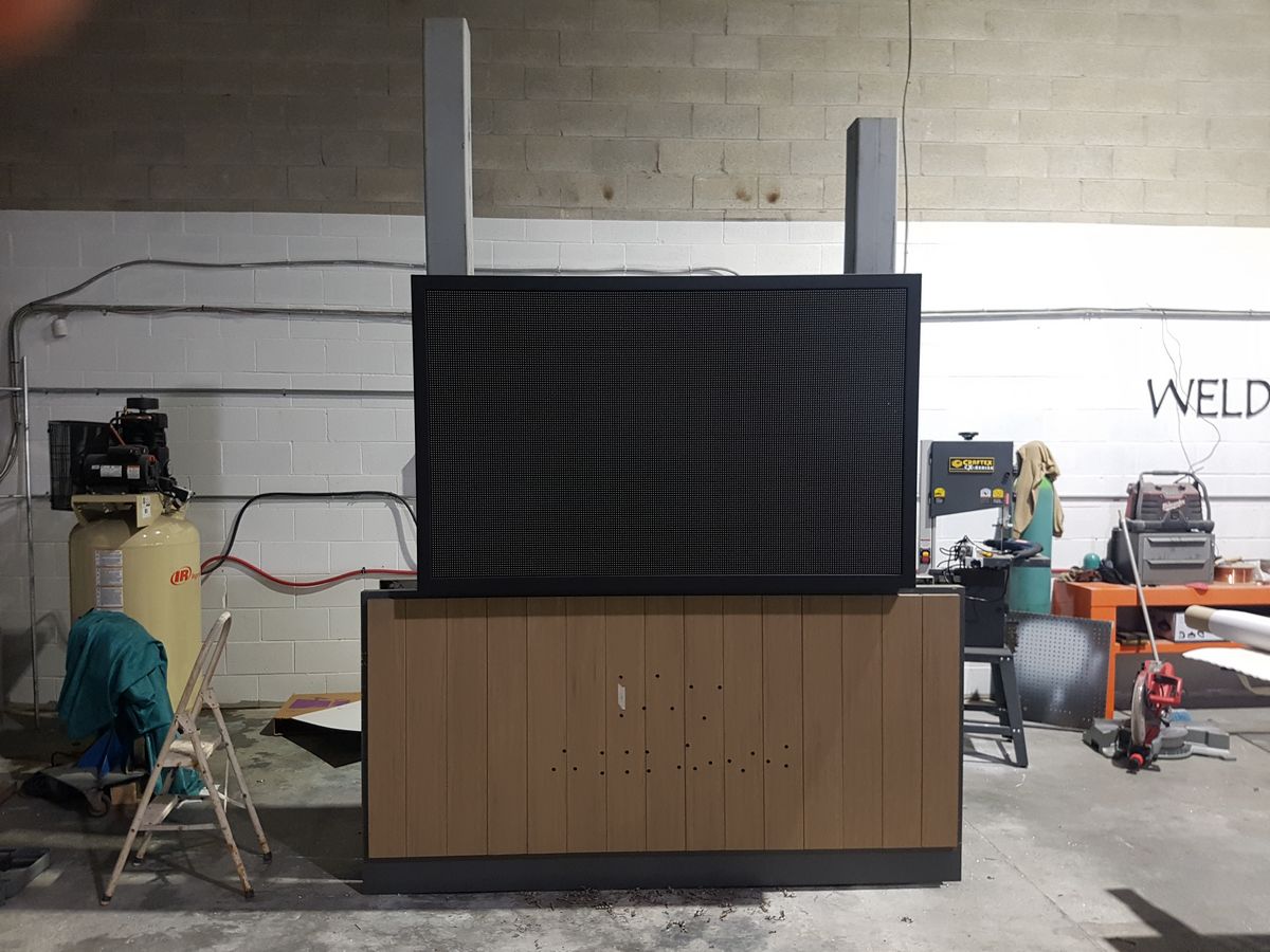 Because the church resides in the District of Muskoka, there is a policy which restricts the nature of illuminated signs in order to maintain a "dark sky" environment in keeping with the natural beauty and peaceful attributes of cottage country. For this reason, the sign required "halo-lit" shapes and letters on the structure, as well as the ability to dim the screens and have them programmable to "dark screens" in the overnight hours.